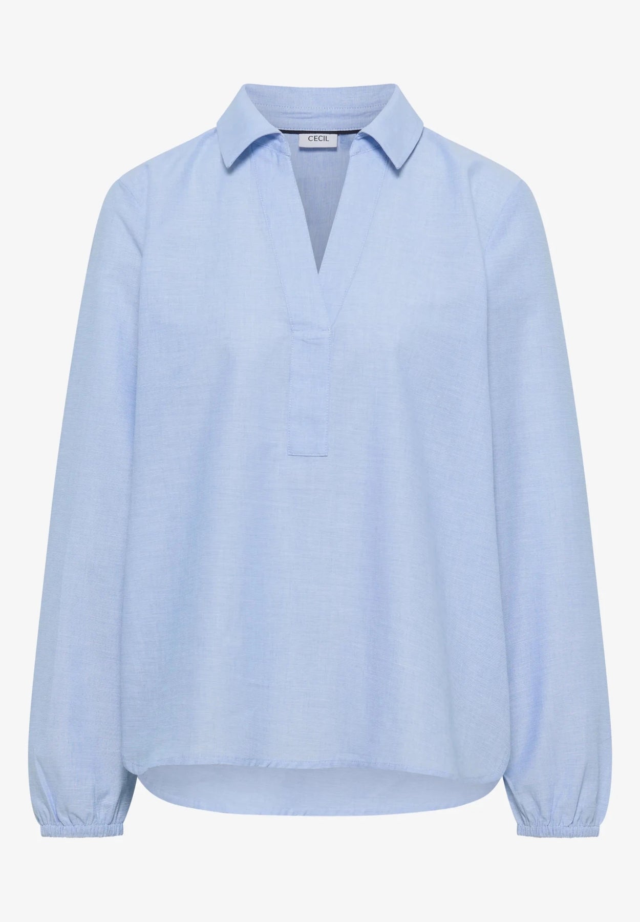Denne ensfargede chambray-blusen er nydelig: ren bomull, splittet hals med skjortekrage og elastiske mansjetter på ermene sikrer komfort og stil. Den lett avrundede kanten gjør den allsidig – et smart hverdags-essensielt plagg. Laget av: 100% bomull.