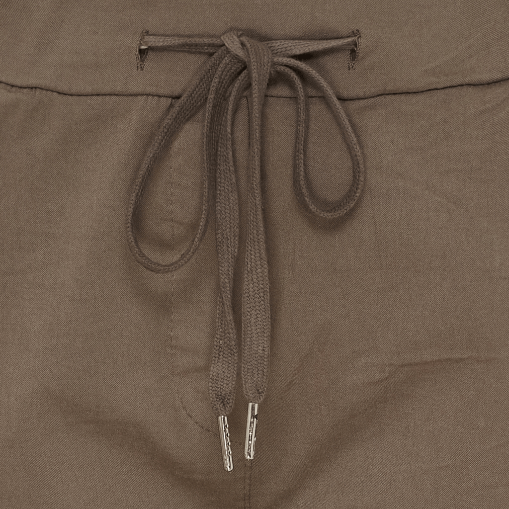 Kalie bukse - fango er det perfekte tilskuddet til garderoben din. Denne stilige buksen er laget av en myk blanding av 75% viskose, 20% nylon og 5% elastan, noe som gir en fleksibel passform som tilpasser seg din kropp. Med mulige størrelser fra S/M til L/XL, tilbyr den komfort med en midje på ca. 74 cm eller 80 cm og en lengde på ca. 99 cm eller 104 cm. Enten du skal på jobb eller en avslappet sammenkomst, gir denne buksen deg et allsidig og trendy utseende. Opplev komfort og stil med Kalie bukse i fargen fango.