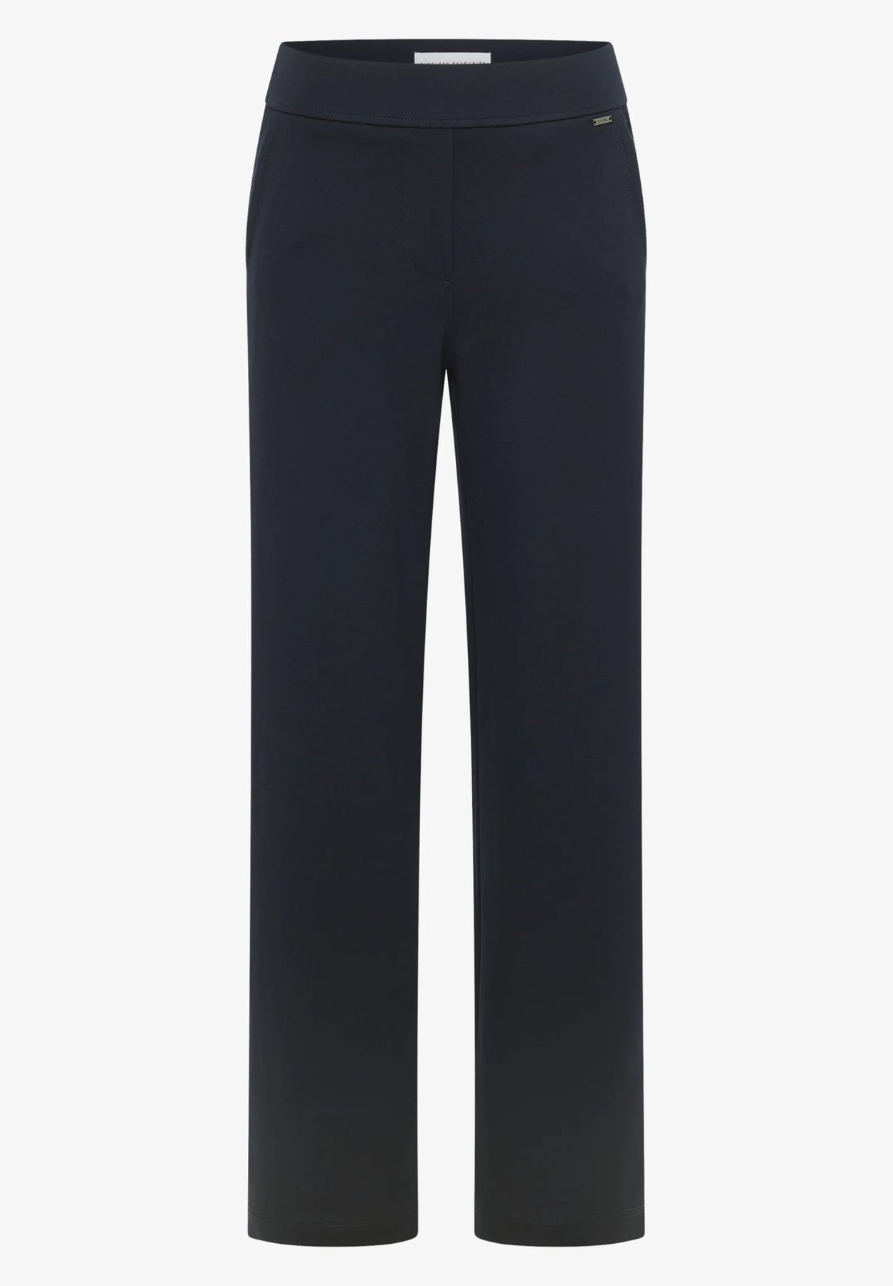 Disse buksene er laget av komfortabelt jerseystoff og tilbyr en avslappet passform med løse, høye og rette ben. En elastisk linning og sidelommer gjør dem spesielt komfortable – perfekte for et avslappet hverdagsantrekk. Laget av: 61 % viskose, 32 % polyamid, 7 % elastan