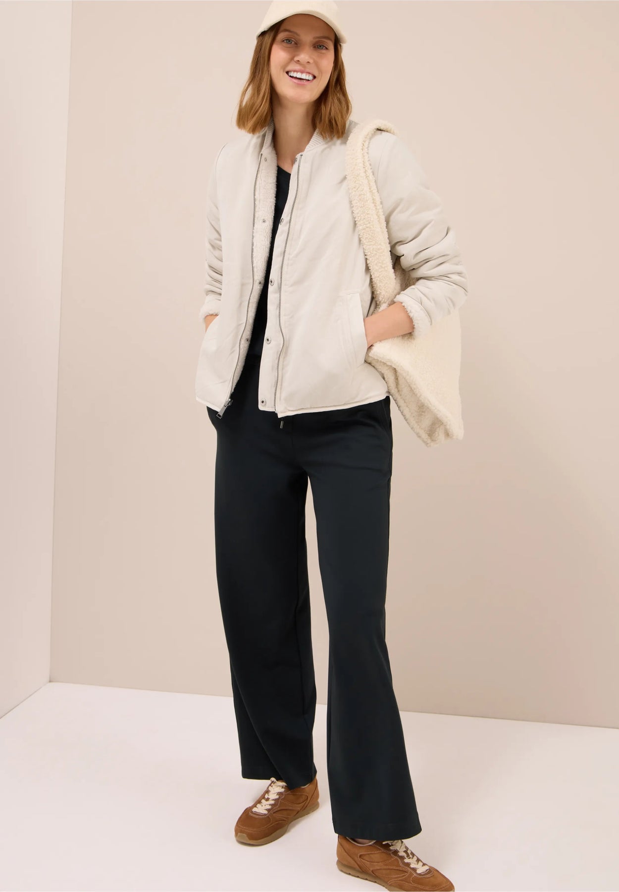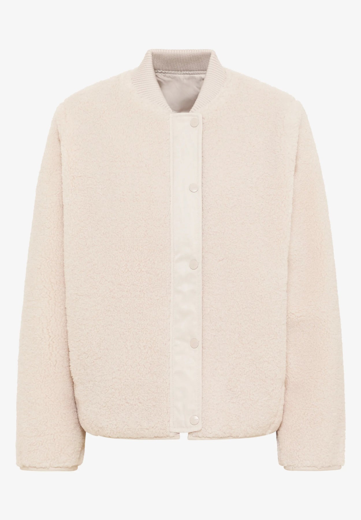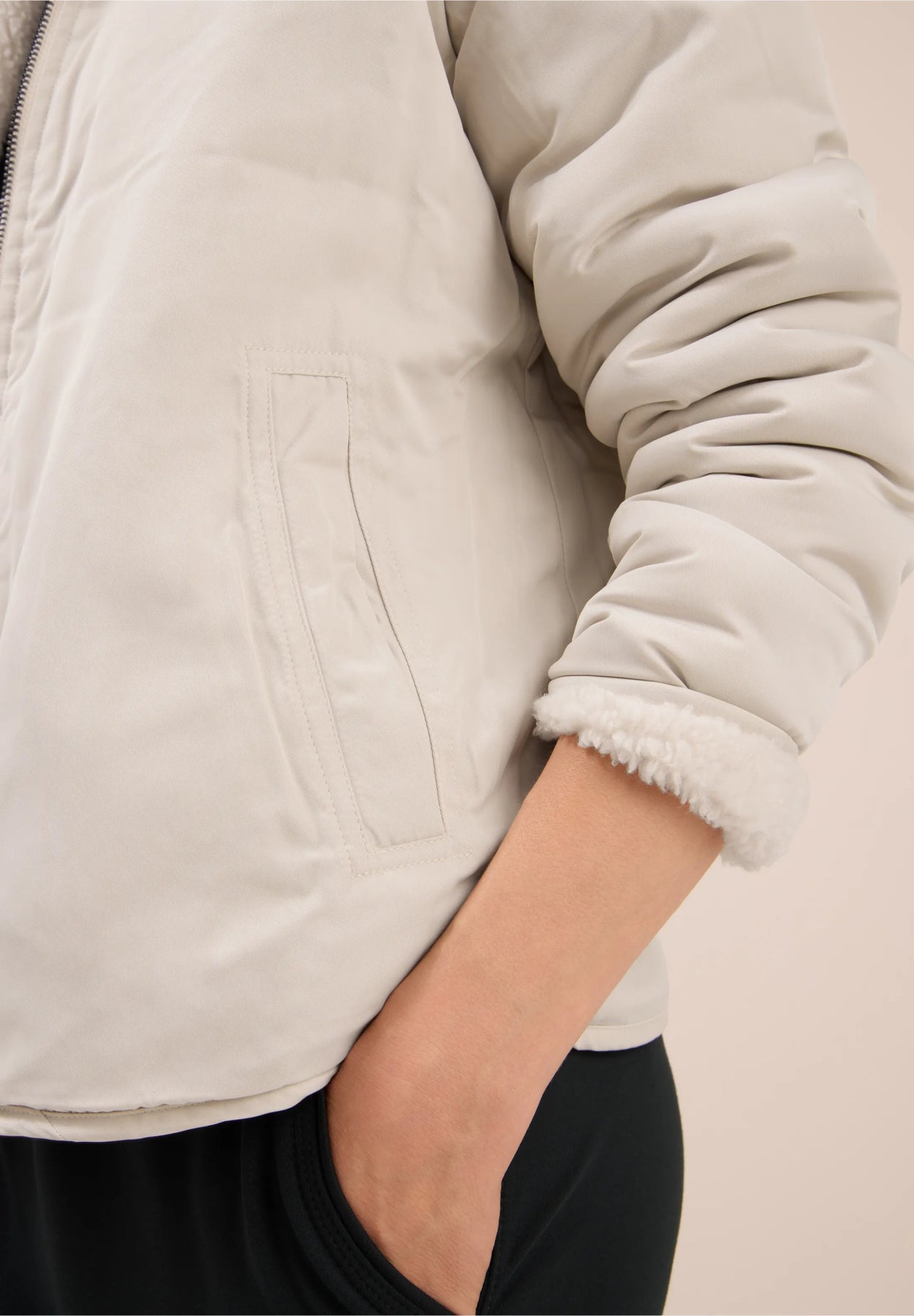 To stiler i ett: Denne vendbare jakken gir deg valget mellom en glatt overflate og et deilig teddystoff. Sidelommer og glidelås med ekstra knappestolpe sikrer komfort og funksjonalitet. Stilren beige farge, superlekker og praktisk jakke som passer til enhver anledning.