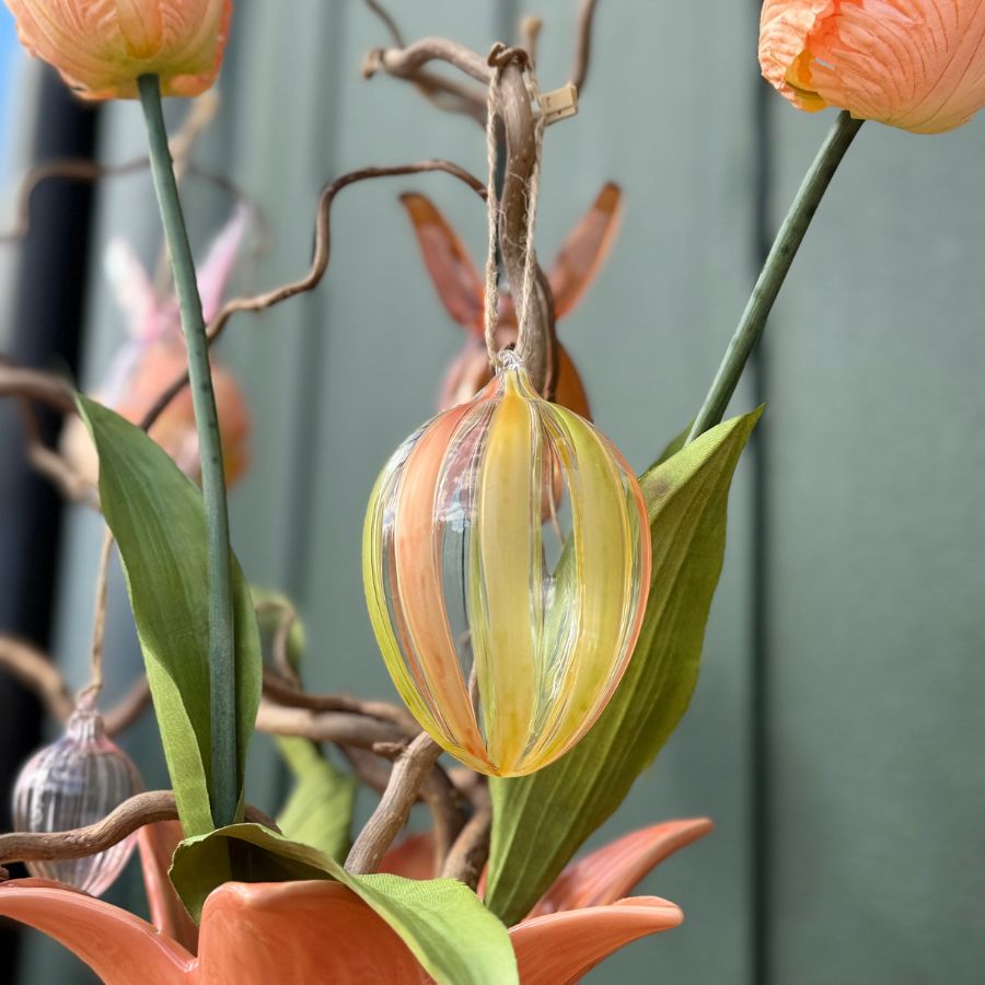 Nydelige håndmalte hengende egg. Mål: H: 8cm x B: 6cm x D: 6cm.
