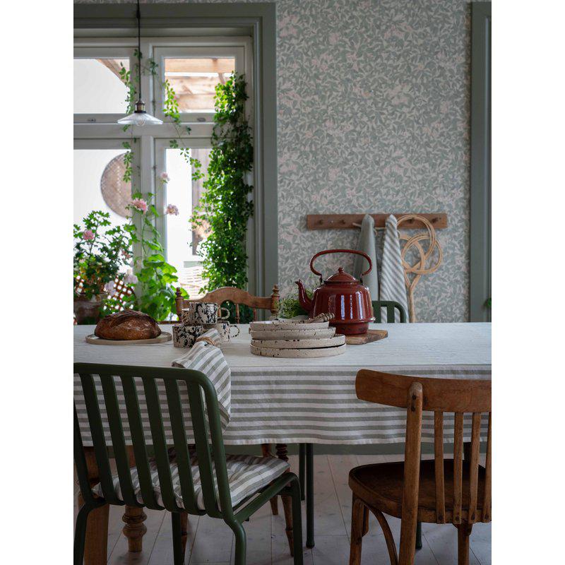 Denne klassiske stripete duken er et elegant og stilig tilskudd til borddekkingen, med sine sommerfarger og tidløse design. Den er laget av resirkulert bomull og resirkulert polyester, noe som gjør den både til et miljøvennlig og bærekraftig valg.