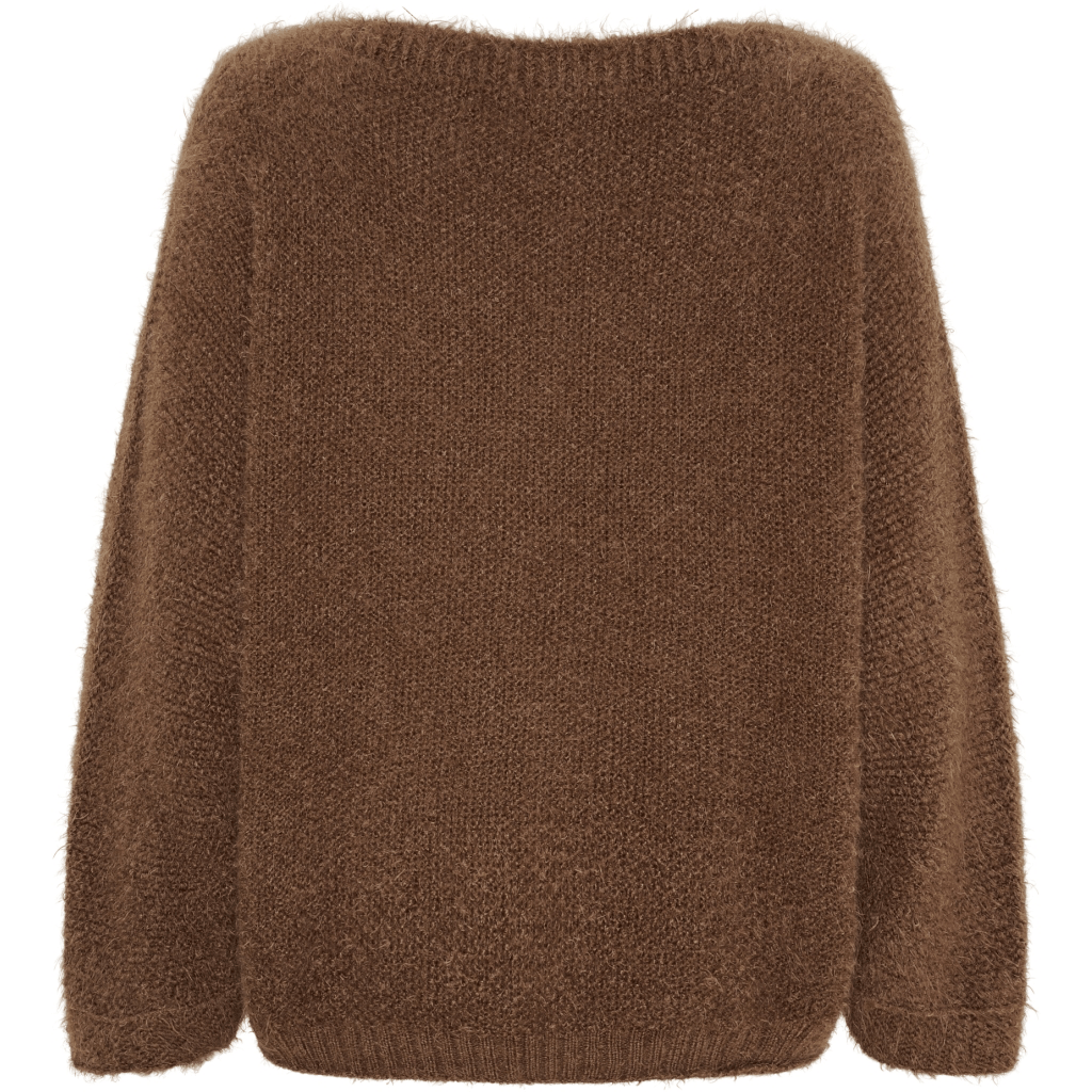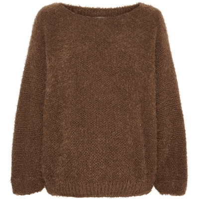 Anouk strikkegenser i en elegant brun nyanse. Tilgjengelig i størrelsene S/M og L/XL, har den en avslappet passform med en lengde på henholdsvis 60 cm og 63 cm, og en brystvidde på 128 cm og 130 cm. Perfekt for å holde deg varm i kaldere vær og lett å style til forskjellige antrekk. Laget av: 50% akryl, 30% polyamid, 10% lana og 10% viskose.