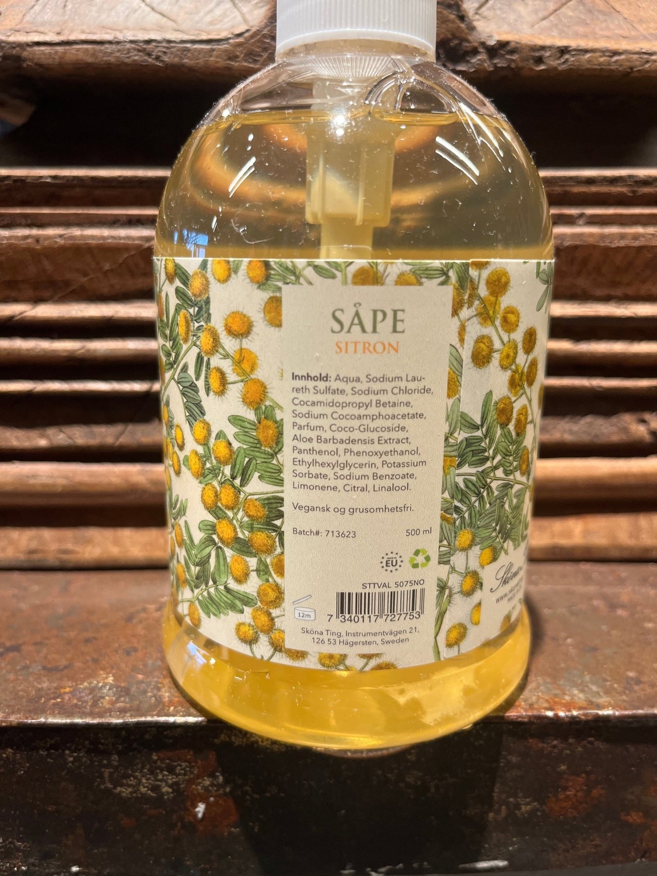 Oppdag vår luksuriøse pumpesåpe med duft av sitron og mimosa. Denne 500 ml pumpeflasken er perfekt for både kjøkken og bad, og gir et friskt pust til håndvaskrutinen din. Den milde formelen renser huden skånsomt og etterlater en behagelig sitrusduft. Vår veganske og grusomhetsfrie såpe er et etisk valg, ideell for daglig bruk. Oppgrader din håndvaskopplevelse med denne unike sitronsåpen. Myke og rene hender venter.