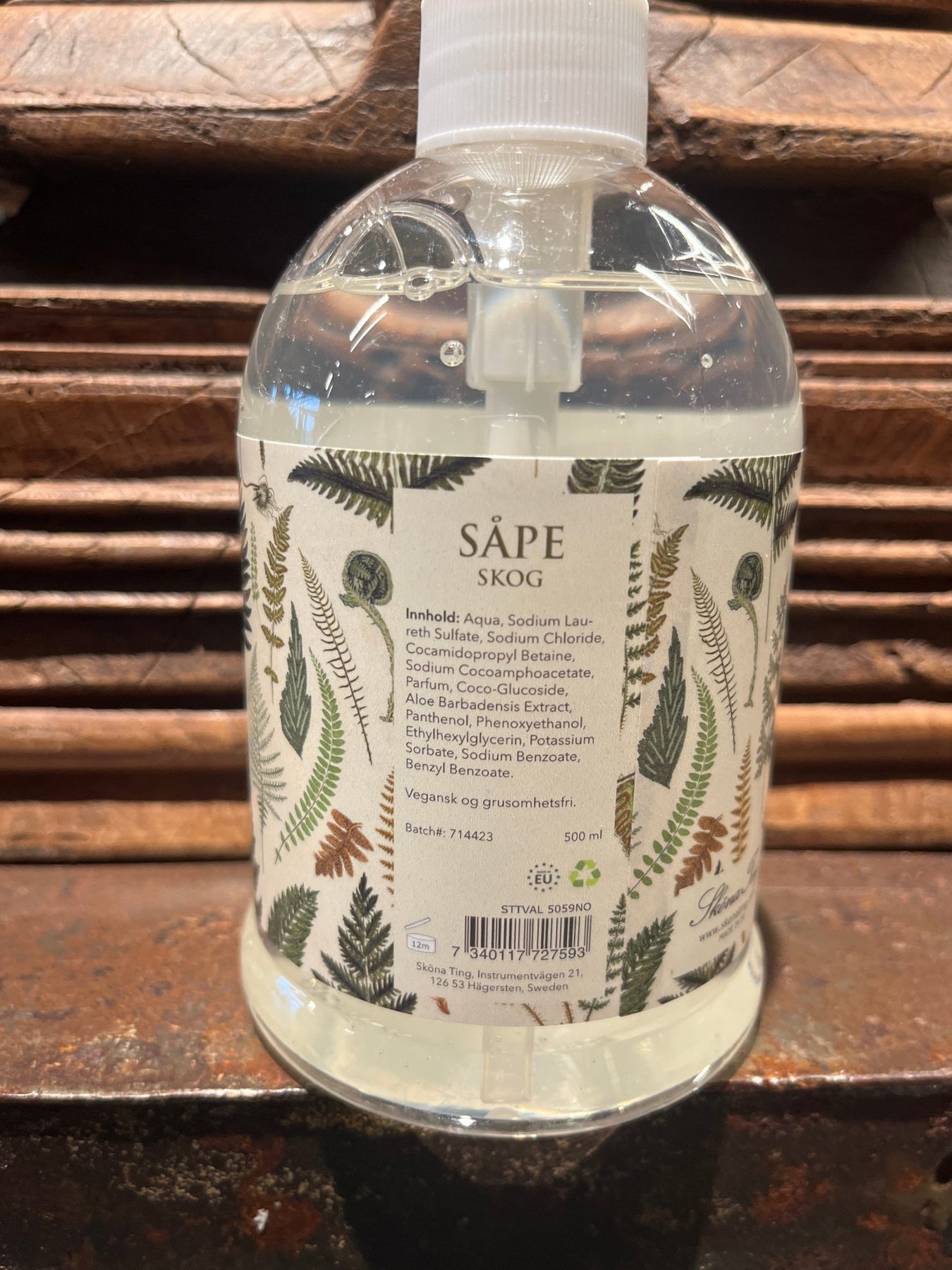Oppdag den forfriskende følelsen av vår pumpesåpe med skogduft, tilgjengelig i en praktisk 500 ml flaske. Denne såpen gir hendene dine en ren og fornyet følelse, samtidig som den etterlater en subtil duft av skog og friske ormblader. Et flott tillegg til både bad og kjøkken, designet for å tilføre et snev av natur til din daglige hygiene. Perfekt for de som verdsetter både stil og funksjonalitet. Såpen er vegansk og grusomhetsfri.