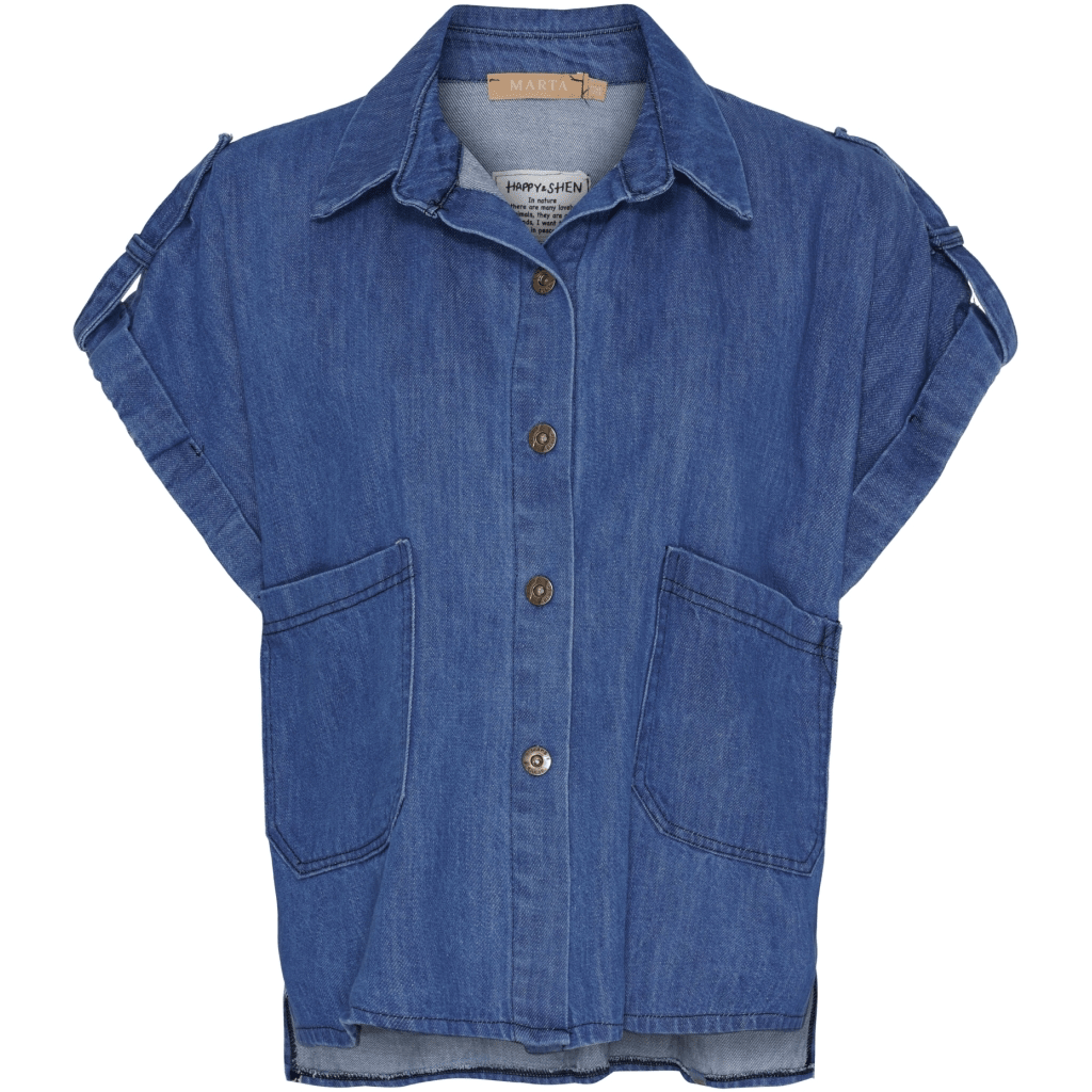 Carola Vest i medium blå er den perfekte kombinasjonen av stil og komfort. Denne onesize vesten har en brystmål på 62 cm og en lengde på 62 cm, som gir en behagelig passform. Enten du bruker den over en skjorte eller utenpå en kjole, gir Carola Vest et moteriktig uttrykk til enhver garderobe. Materiale: 100% bomull.