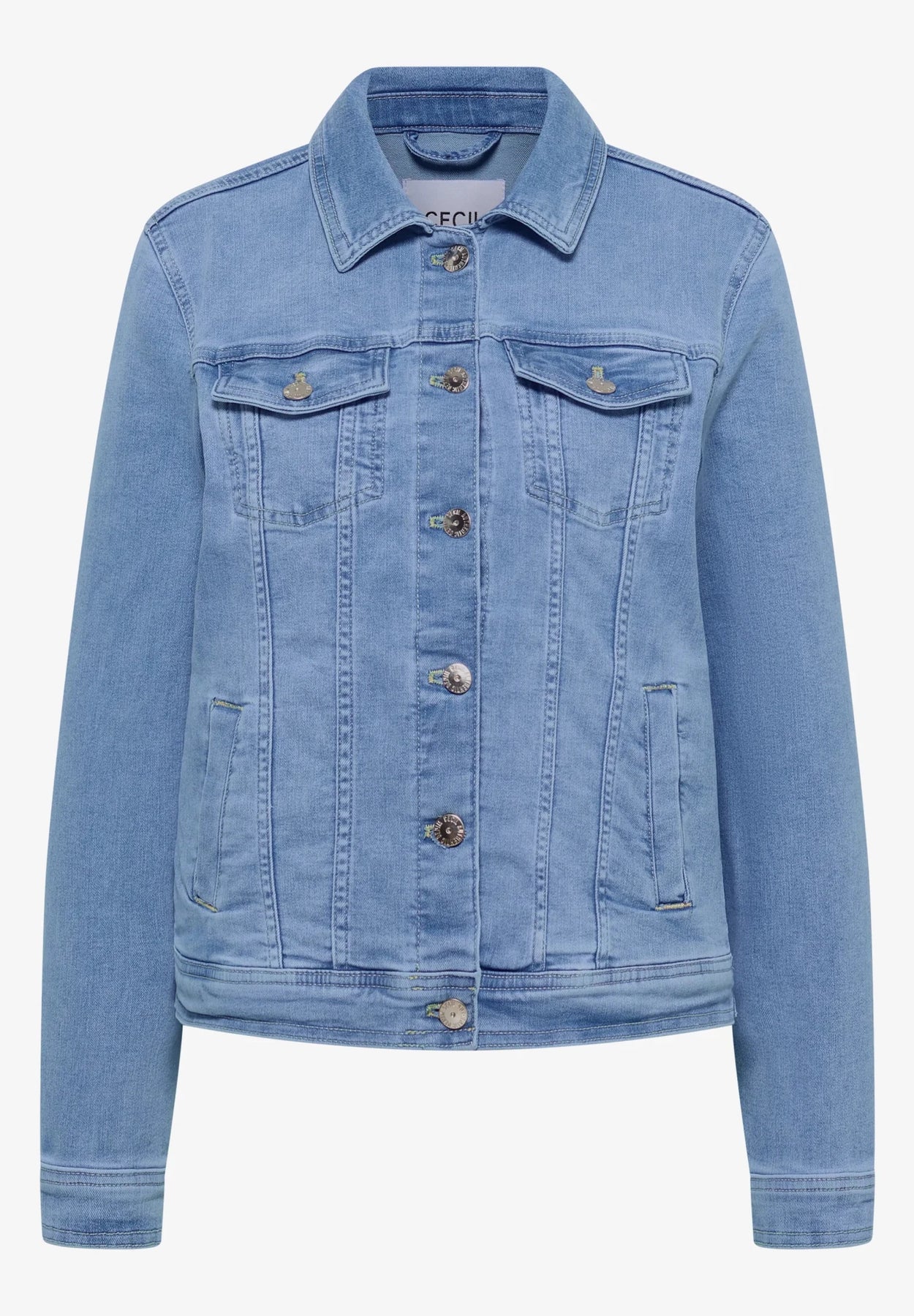 Denne lyse dongerijakken er designet med en klassisk skjortekrage og langermet passform, perfekt for alle årstider. Jakken tilbyr allsidige kombinasjonsmuligheter og passer til både hverdags- og festantrekk. Materiale: 70 % bomull, 28 % polyester, og 2 % elastan.