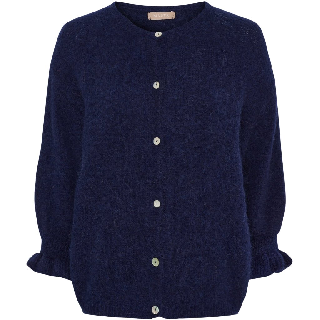 Juliana strikk i en elegant navy tone. Denne genseren kombinerer materialer for optimal kvalitet og komfort, bestående av 30% babyalpakka, 19% akryl, 10% ull, 38% polyamid, og 3% elastan. Perfekt for både hverdag og spesielle anledninger, gir dette plagget en myk og varm følelse samtidig som det gir et sofistikert uttrykk.