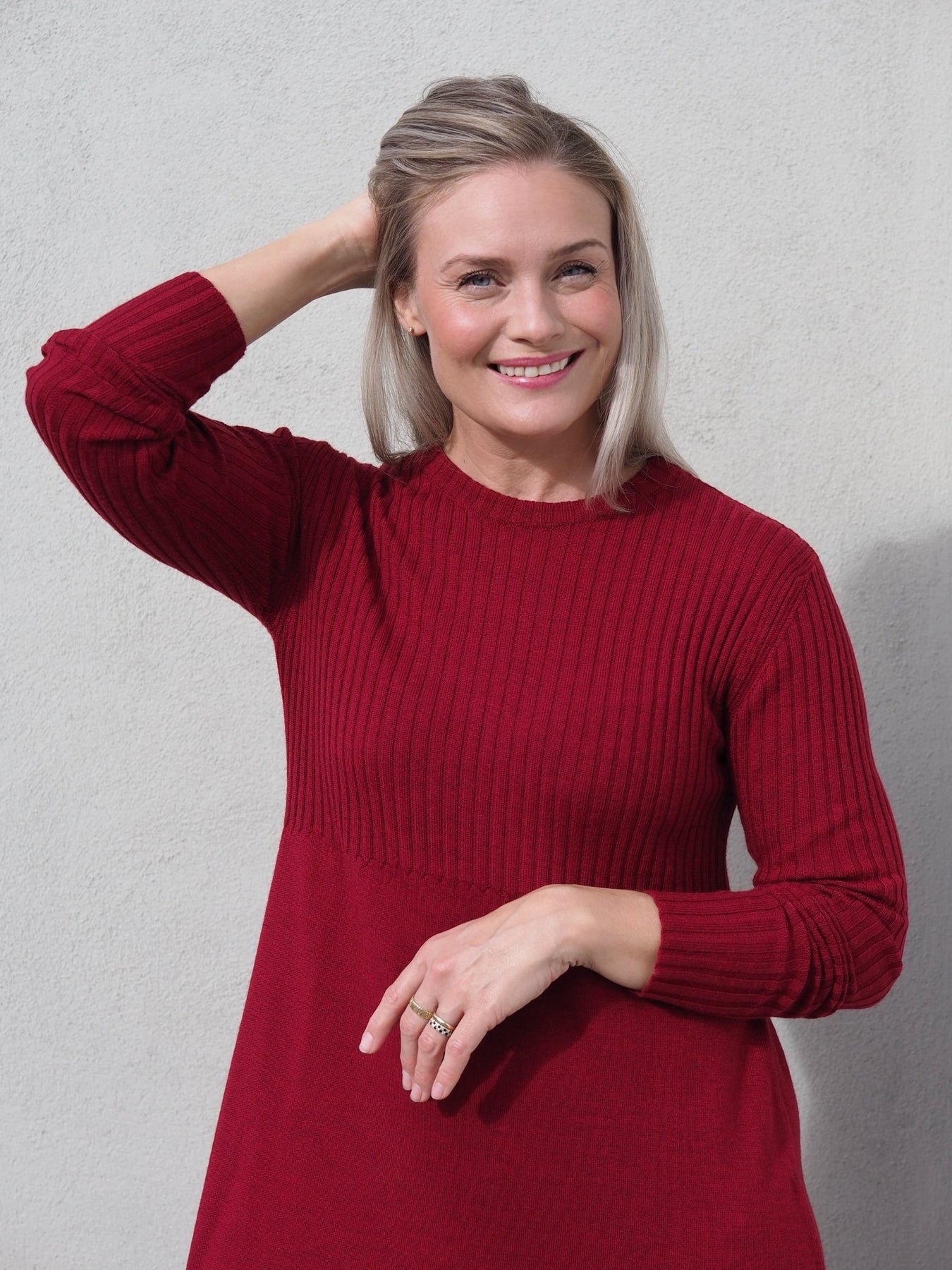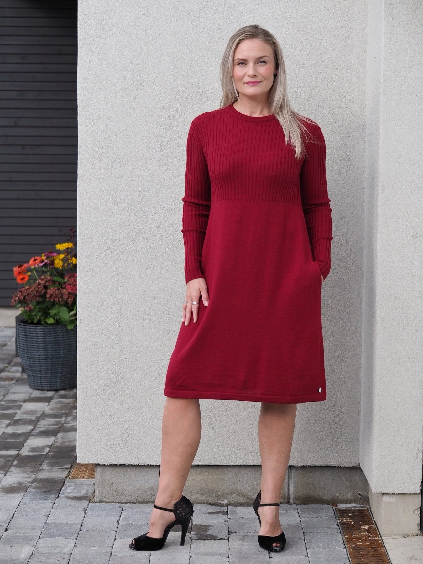 Bud kjole i farge cherry, laget av 100% merinoull. Denne stilige kjolen kombinerer tidløs design med en varm og luksuriøs følelse, perfekt for enhver anledning. Merinoullens naturlige egenskaper gir pusteevne, fukttransport og temperaturregulering, som holder deg komfortabel hele dagen. Den dype cherryfargen gir et sofistikert uttrykk, mens den flatterende passformen fremhever din silhuett.