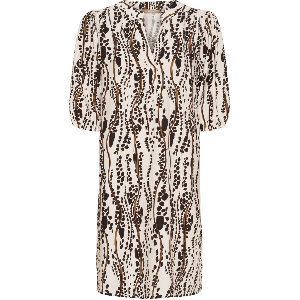 Elegante goldie kjolen i klassisk svart. Denne kjolen tilbyr en utsøkt kombinasjon av 90 % viskose og 10 % nylon, som gir en behagelig og luksuriøs følelse mot huden. Med sitt stilige design og v-hals passer den perfekt til både hverdag og festlige anledninger. Velg mellom størrelsene S/M og L/XL for optimal passform: - S/M: Bryst 102 cm, Lengde 100 cm - L/XL: Bryst 104 cm, Lengde 102 cm.