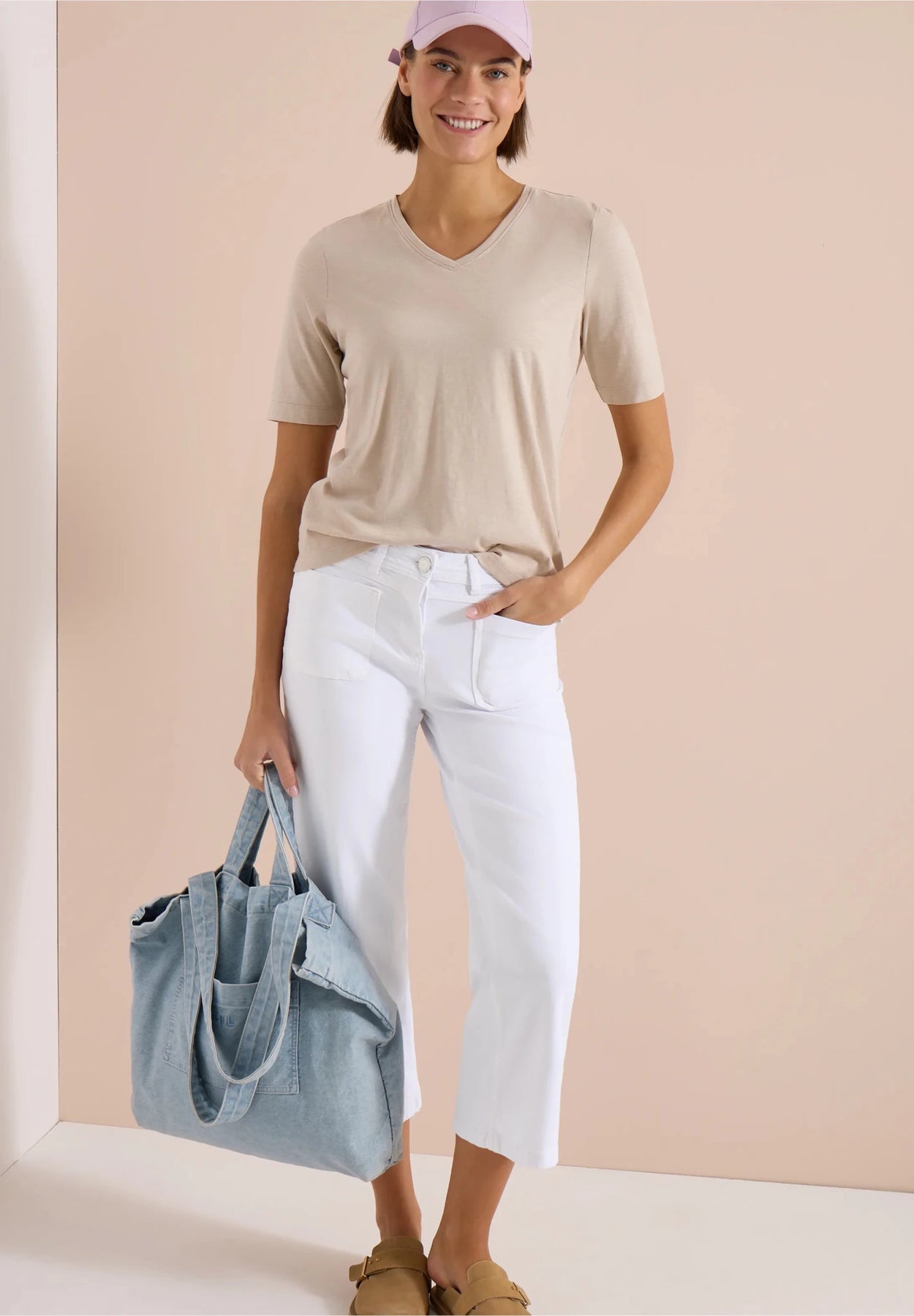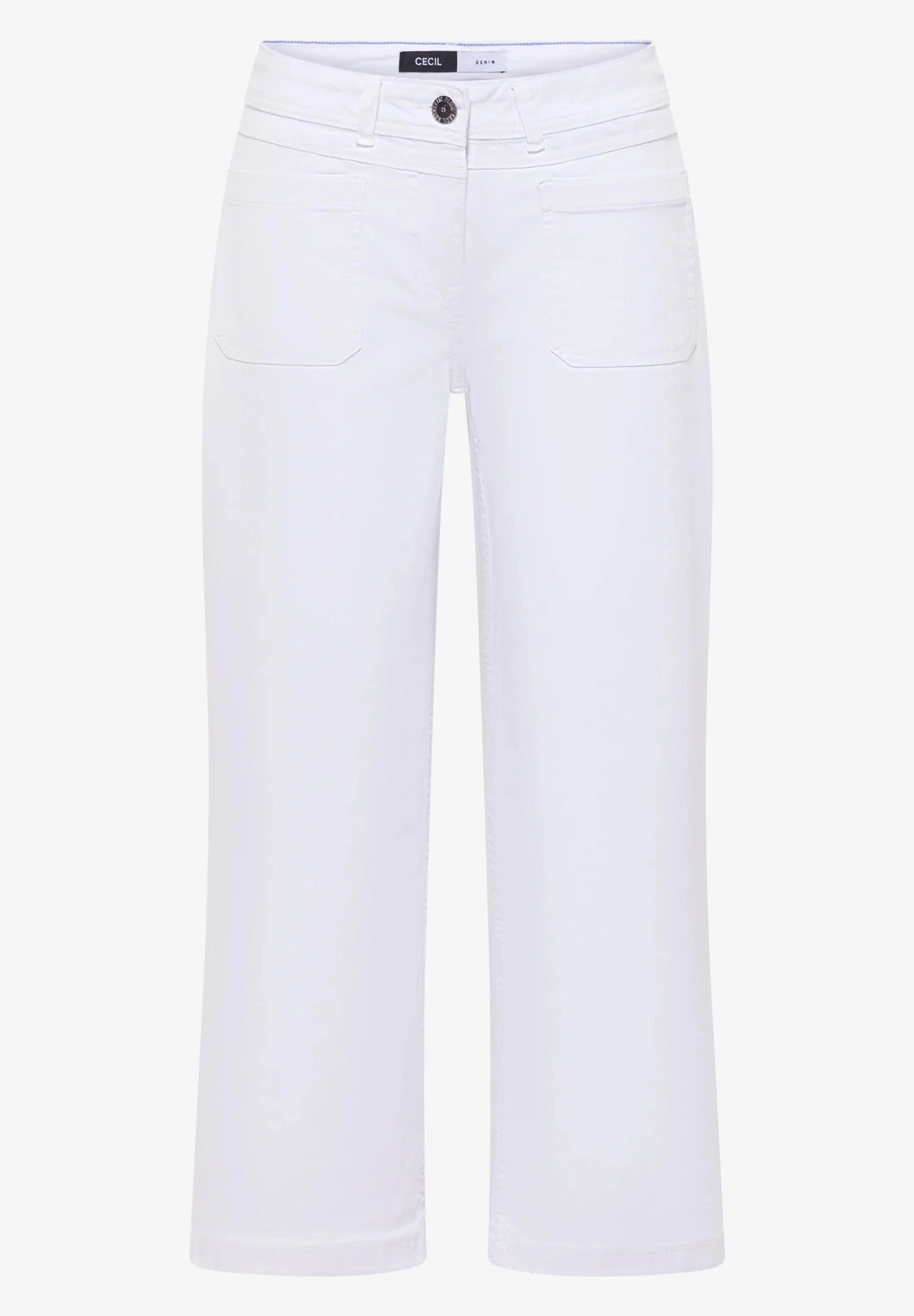 Disse jeansene kombinerer en avslappet passform med brede ben og høy midje, skapt for komfort med deres elastiske denimkvalitet. Gå for en stilren look med den elegante hvitkalkede fargen, som kompletteres av påsydde lommer foran og bak. Med glidelås og en tidløs design blir disse jeansene et must-have i sommergarderoben din.