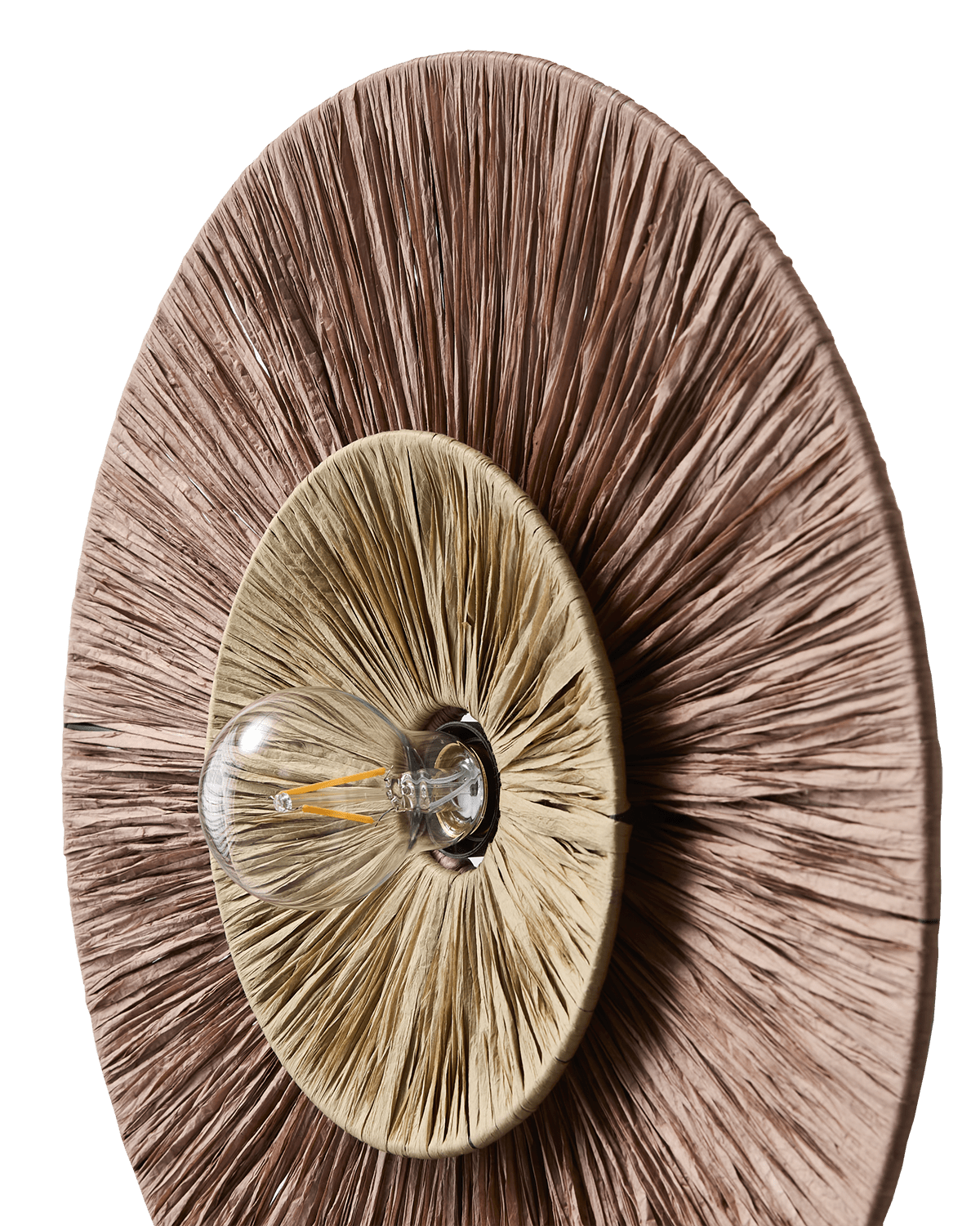 Lando vegglampe brun/natur er en stilfull belysning som tilfører et naturlig preg til hjemmet ditt. Med sin elegante kombinasjon av jern og raffiagress gir denne lampen et unikt visuelt uttrykk. Den har en praktisk E27-sokkel og kommer med en 2,5 m lang kabel med bryter, noe som gjør den enkel å installere og bruke. Den har en diameter på 40 cm og en dybde på 12 cm, perfekt for å fylle rommet med varmt og innbydende lys.