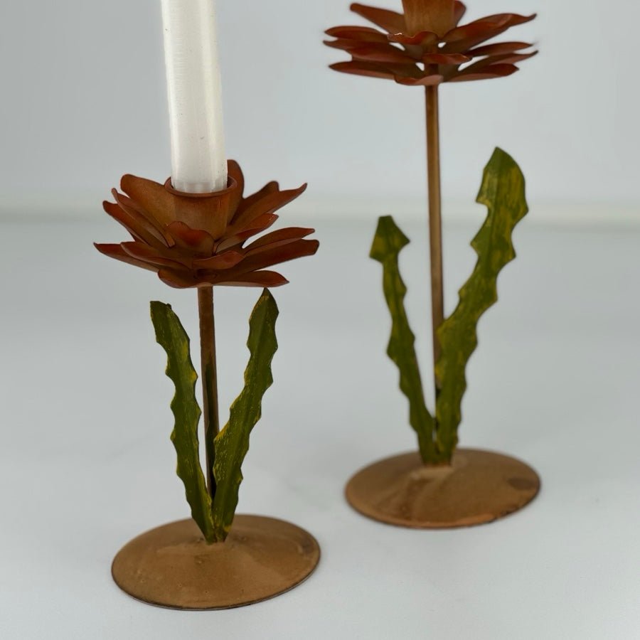 Dandi lysestake gir en elegant og dekorativ touch til hjemmet ditt. Denne unike lysestaken er formet som en blomst, og passer perfekt til stearinlys. Med en bredde og dybde på 9 cm og en høyde på 17 cm, er den ideell for å skape en varm atmosfære. Laget av solid jern, preges den av vakre flerfargede detaljer som tilfører et kunstnerisk preg til rommet. Perfekt for stue, spisestue eller som en delikat gave til noen spesielle.