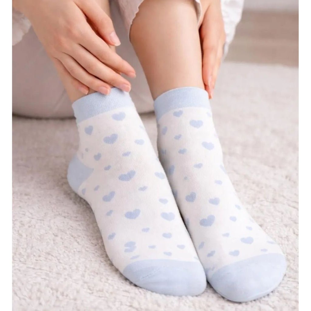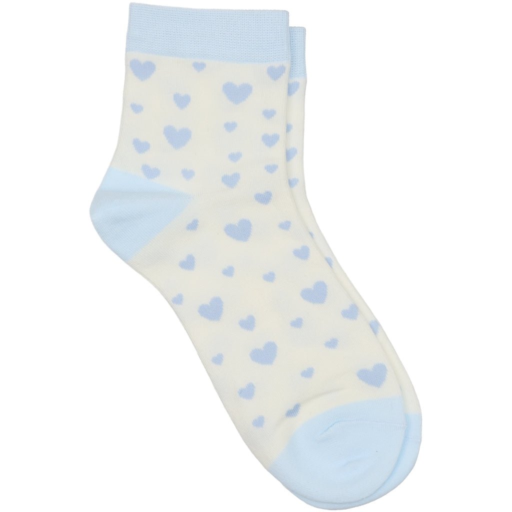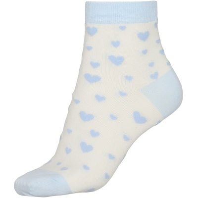Nya strømper dekorert med sjarmerende blå hjerter. Materiale: 85% bomull, 10% polyester og 5% elastan.
