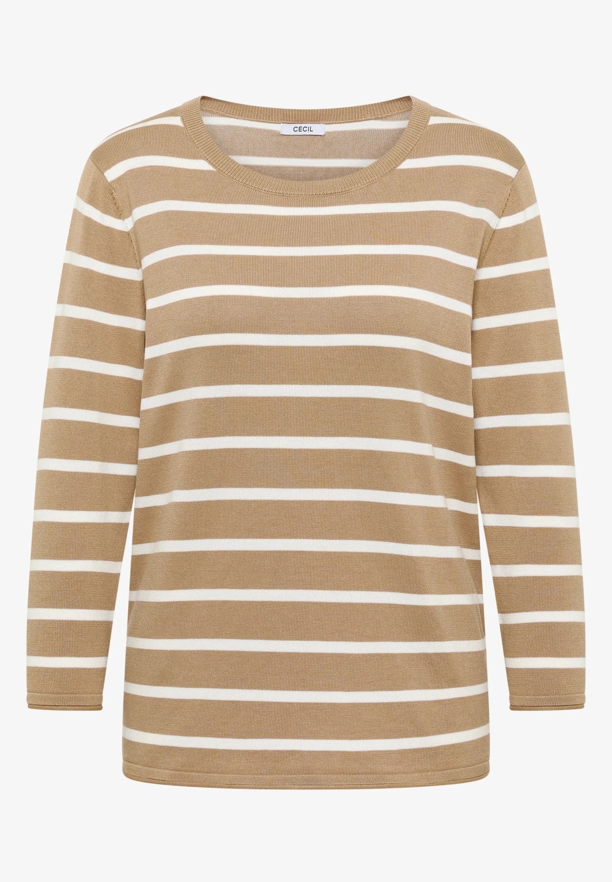 Med sitt moderne stripete mønster vil genseren gi et friskt preg til din garderobe. Den myke bomullsblandingen sikrer en komfortabel følelse, mens den runde halsen og trekvart-ermene skaper en avslappet silhuett. Allsidig og enkel å style, et perfekt hverdags-essensielt plagg. Materiale: 60% bomull, 40% viskose.
